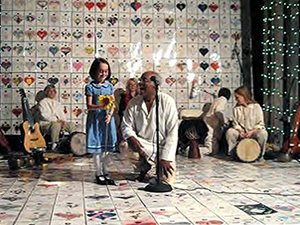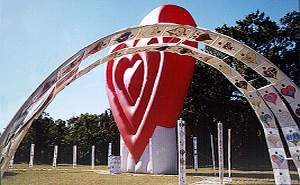 For our project we chose 1,500 hearts that were laminated by a local printer and with these created a large outdoor arena at Phillippi Estate Park in Sarasota, FL. Many events took place within this arena and everyone was surrounded by the “Peace” visions and ideas of our students. We rented the tallest, 40′ high, heart balloon in North America as our centerpiece and featured a marathon reading of the children’s writings. Music, poetry, dancing, meditation, and a prayer vigil also happened in this arena.